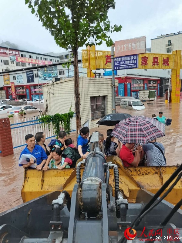 雨还在下,吴兴建心急如焚。惊魂未定的人们看到向他们驶来的装载机时,内心顿时升腾起希望。迅速赶到现场的消防官兵见状,趟过齐腰深的洪水,立即背起、抱起受困群众,一一护送到装载机铲斗内。